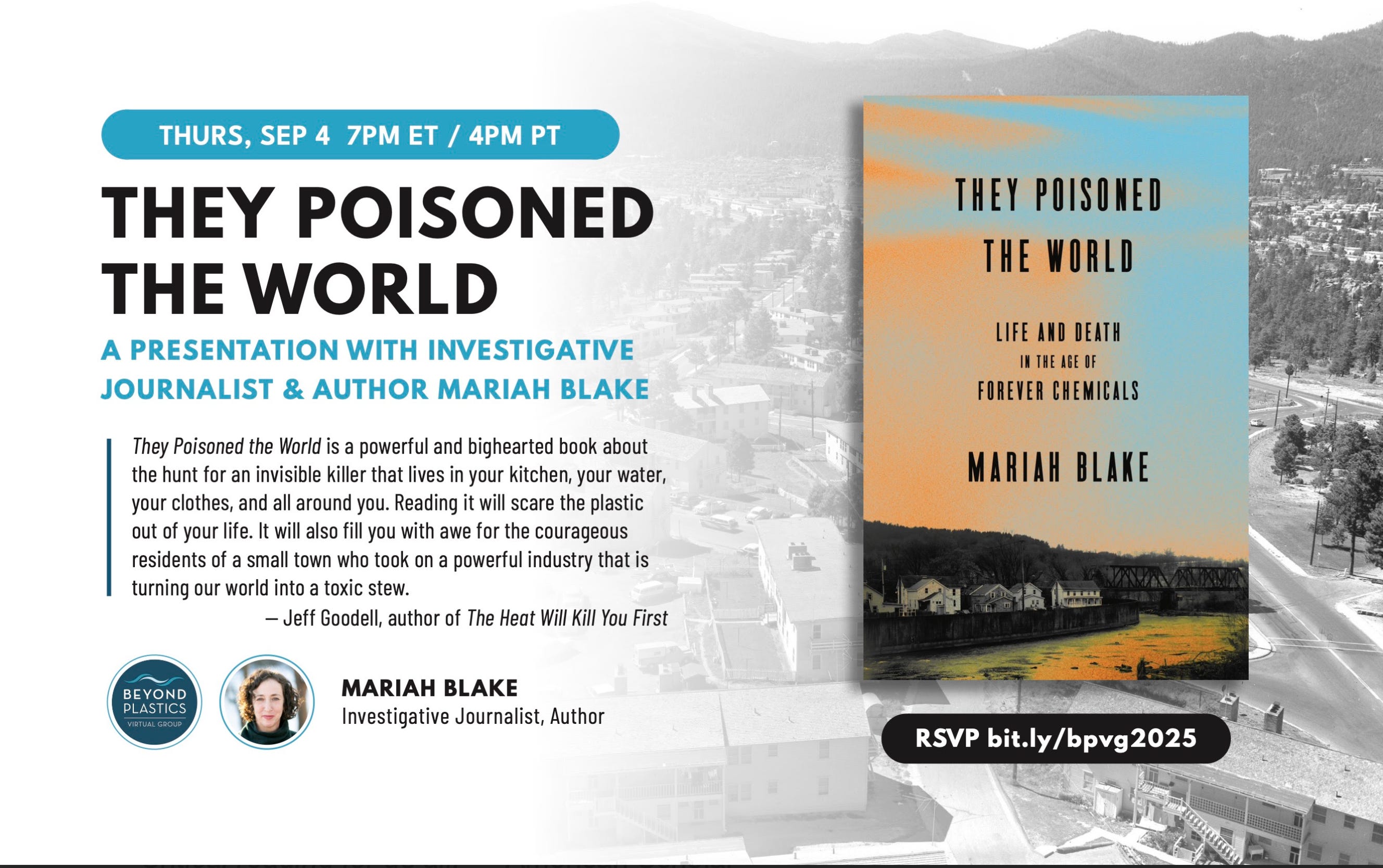 Join us Thursday, Sept. 4 at 7 pm ET / 4 pm PT with investigative reporterMariah Blake, author of They Poisoned the World: Life and Death in the Age of Forever Chemicals.