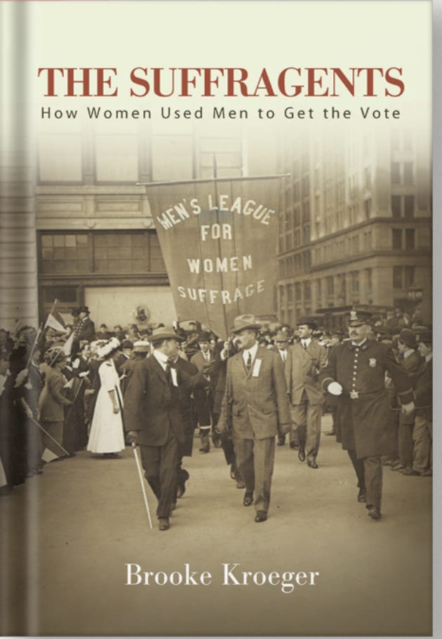 The Suffragents: How Women Used Men to Get the Vote tells the story of New York’s most powerful men creating the Men’s League for Woman Suffrage. Between 1909 and 1917, their league grew from its 150 founding members to thousands in 35 states. The book shows men acting at the behest of the movement’s female leadership, explaining why they did.